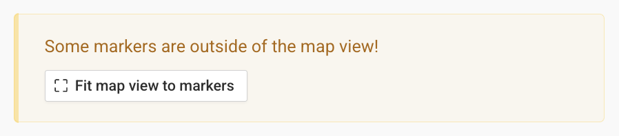 After you add markers to your map, you'll want to make sure they're all visible. You can adjust the view of your map by zooming in on the specific area of interest, or by moving the viewport until you can clearly see the markers. Datawrapper automatically detects when your markers are within the viewport, and if they're not, you'll see an option to Fit map view to markers.